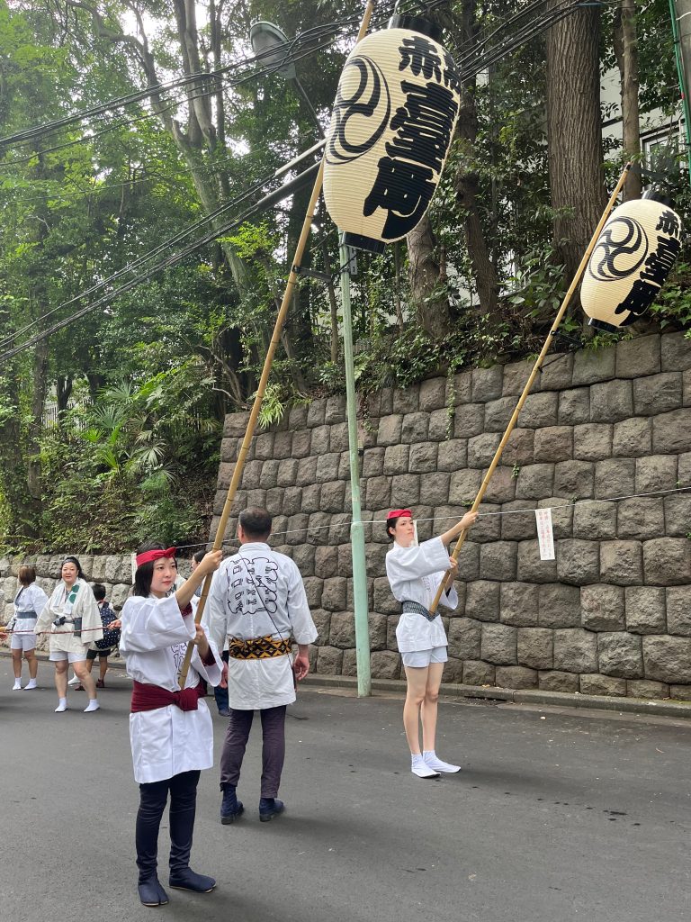 My role is to carry the Takabari-Cho-chin (high-pole lanterns), leading the way for the Mikoshi and the Dashi floats.